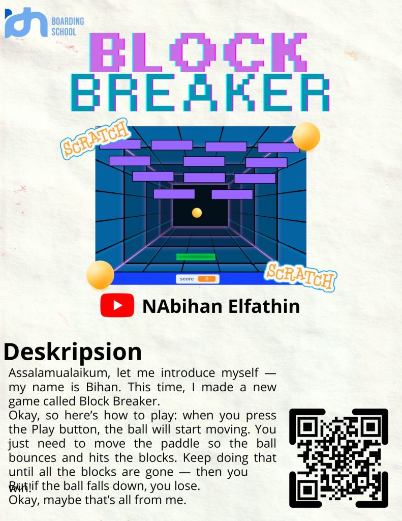 Assalamualaikum warahmatullahi wabarakatuh, let me introduce myself — my name is Khairy Nabihan Elfathin, but you can call me Bihan. This time, I created a new game called Block Breaker.