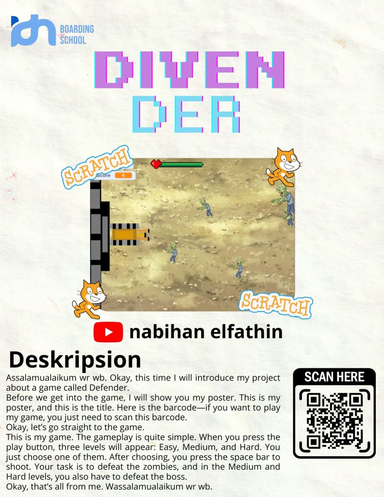 Before we get into the game, I will show you my poster. This is my poster, and this is the title. Here is the barcode—if you want to play my game, you just need to scan this barcode.